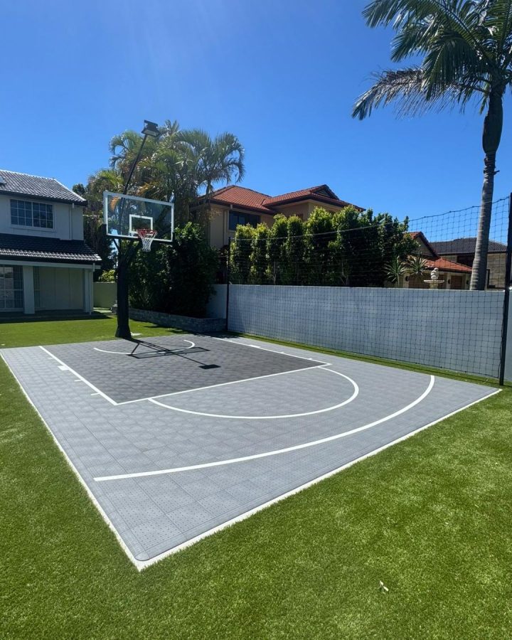 Every residential basketball court we build is custom. The size, layout, surface, colours, and line marking are all tailored to your block.